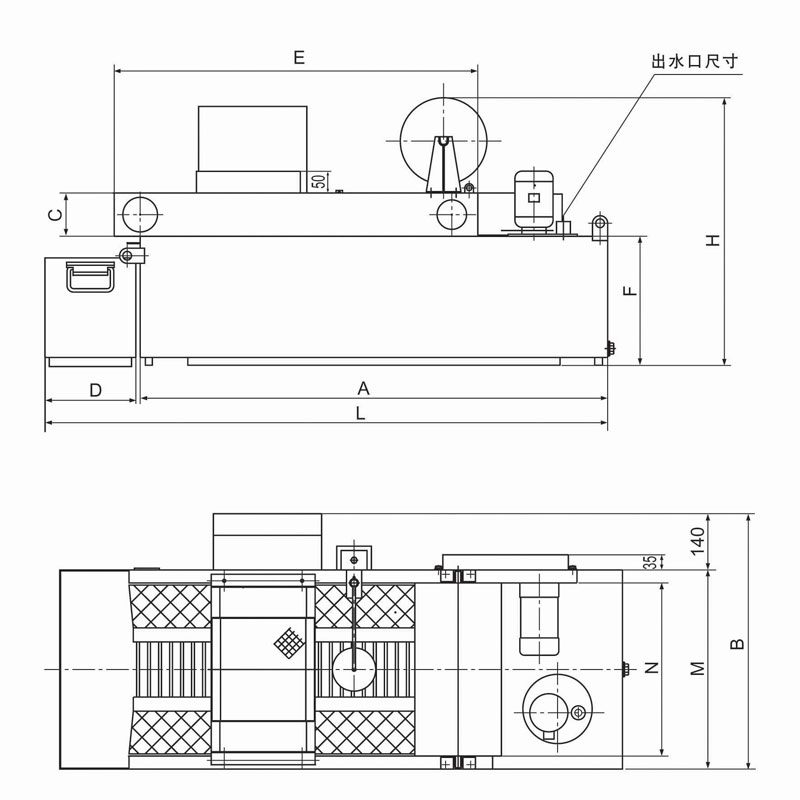 | 型號(hào) | 容積L | 流量L/min | 電機(jī)功率 | A | C | D | E | F | N | M | 水泵型號(hào) | 泵出水口 | L*B*H |
